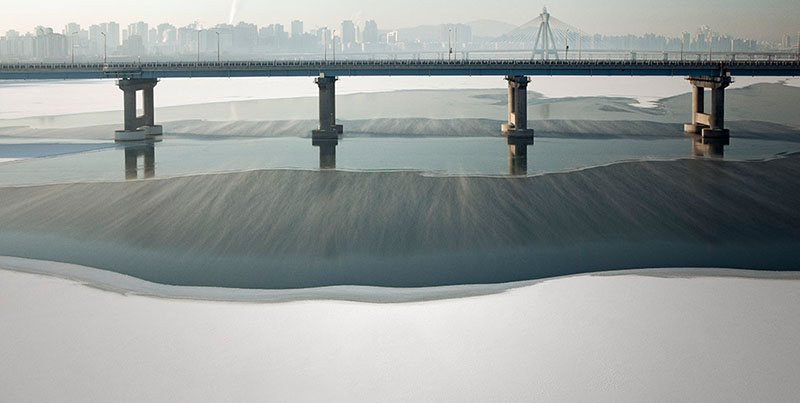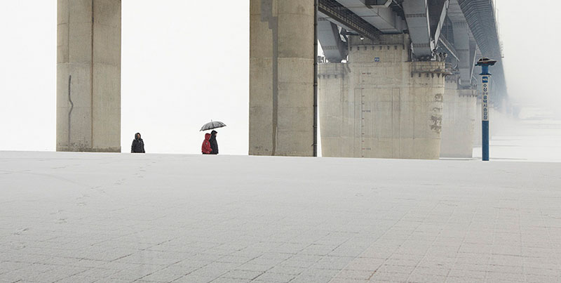 나는 인적이 드문 고즈넉한 장소를 찾아 눈을 기다린다. 마침내 눈이 내리기 시작하면, 강물 주변은 마치 잘 짜인 드라마 세트장처럼 모든 번잡함이 지워지고 간결하게 정돈된다. 주변의 소음과 색채가 하얀 눈 아래 묻히는 순간, 세상과의 단절 속에서 오직 나와 한강만이 오롯이 남는다.