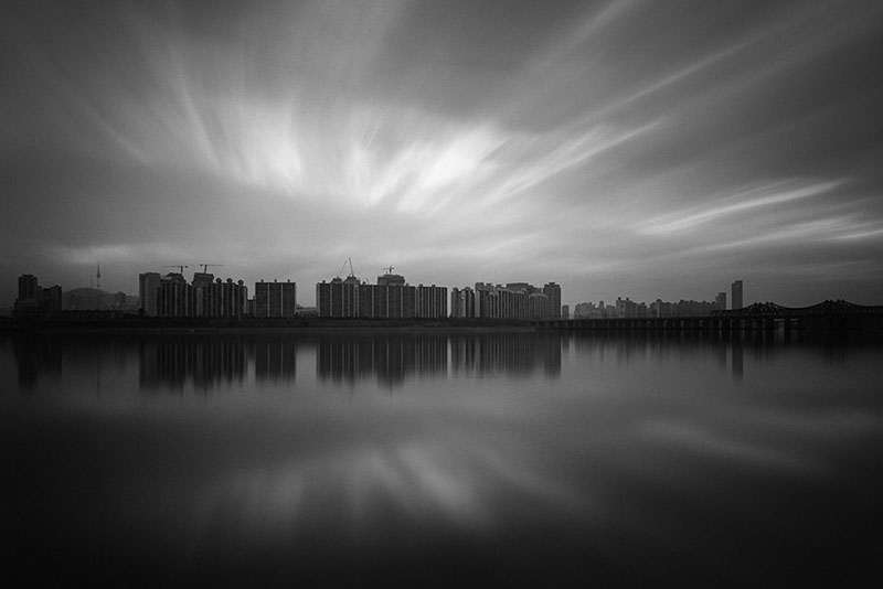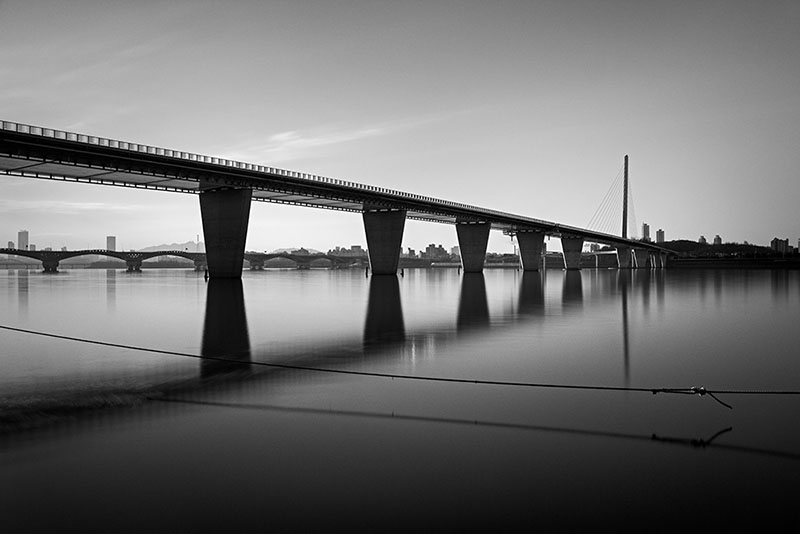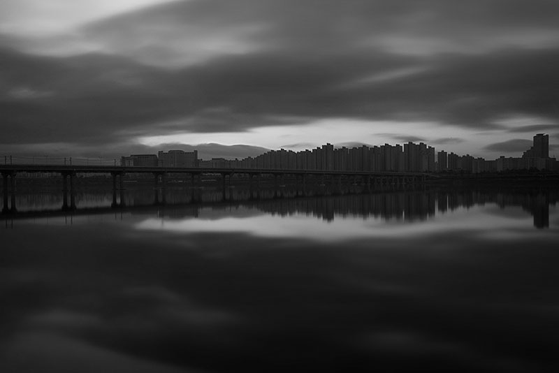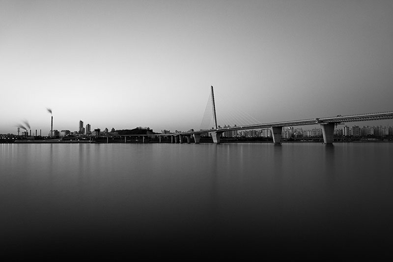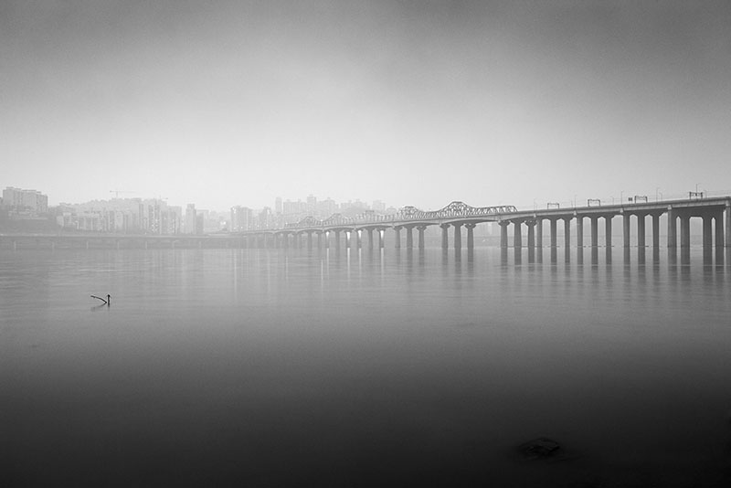 과거 한 폭의 수묵화 같았던 전통적인 강의 모습은 대부분 사라졌다. 그러나 지금의 한강을 깊이 들여다보면, 도시가 잉태한 또 다른 낯선 매력을 발견하게 된다. 정해진 통로를 빠져나오면 다시 속도감 있는 도시의 시간으로 돌아가지만, 나는 카메라를 들고 강물이 품은 고요한 풍경을 묵묵히 기록한다. 수백 년 전이나 지금이나 강은 여전히 흐른다. 나는 그 변함없는 흐름 속에서 도시와 자연 사이에 머무는 한강의 짙은 고요를 바라본다.
