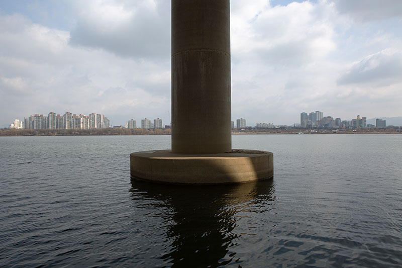 이 정적인 것과 동적인 것의 극명한 특징을 가장 온전하게 담아낼 수 있는 위치는 교각의 정면이다. 마치 피사체의 본질을 기록하는 증명사진처럼 교각의 바로 앞 정확히 정면에서 기둥을 응시한다. 그곳이 흔들림 없는 교각의 뼈대와 멈추지 않는 강물의 대비를 가장 확실하게 증명하는 자리이기 때문이다.