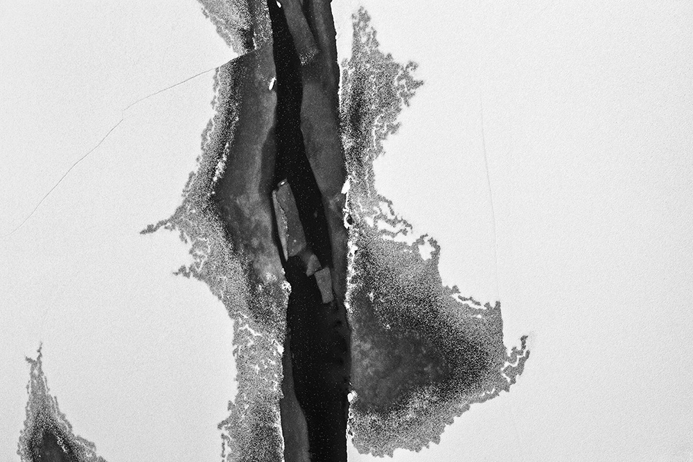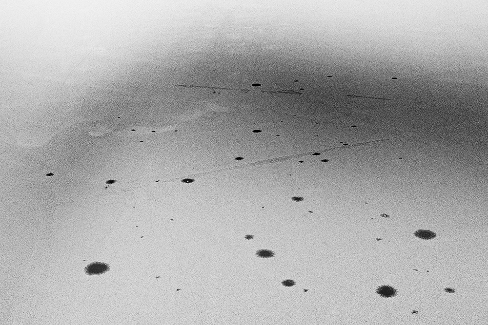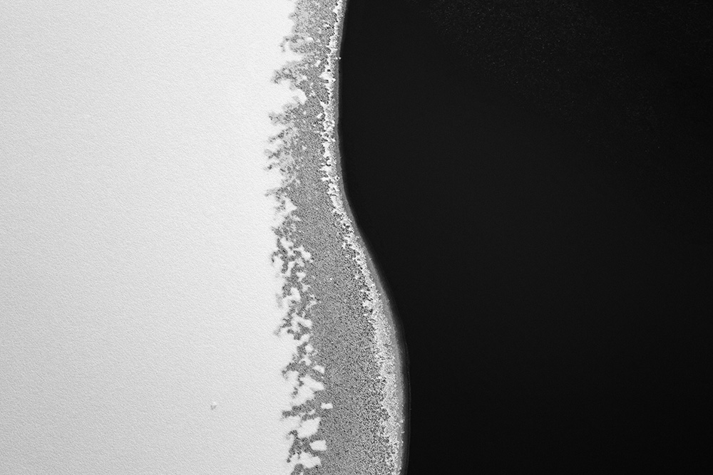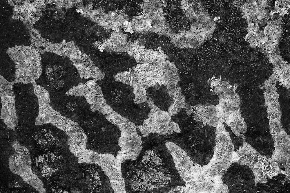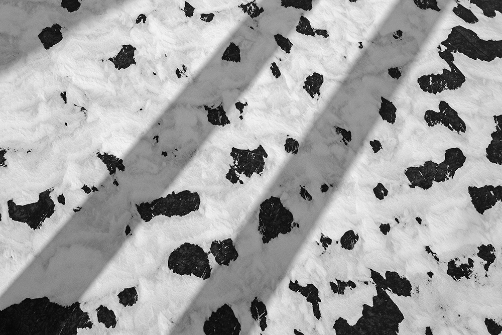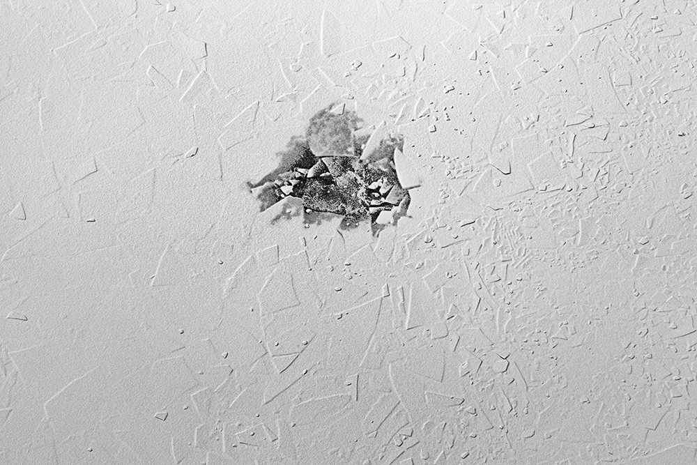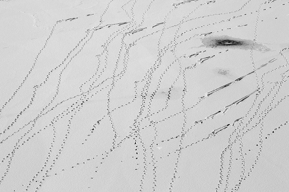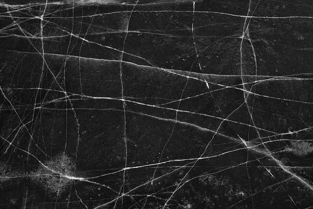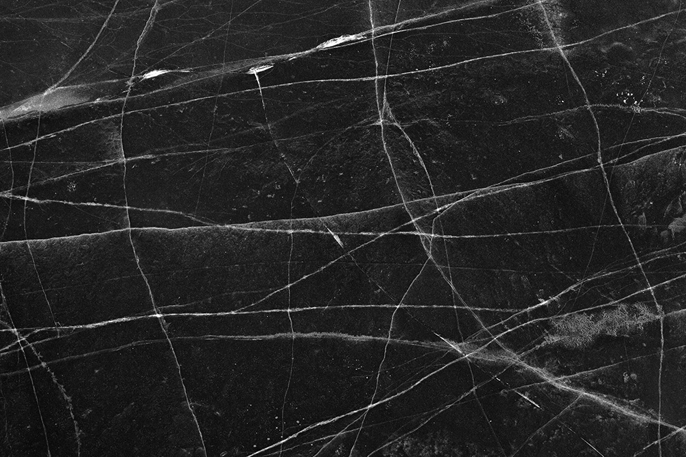 The white and black geometric patterns in these photographs are fragments of the frozen Han River. Shot from above in a bird’s-eye view, the images capture a vast abstract painting created by the river itself. Areas covered with snow appear pure white, while places where the snow has melted or rough ice remains appear deep black. If the river in its usual state reveals graceful lines through its flow, the frozen river of deep winter exposes solid and static planes and patterns.
