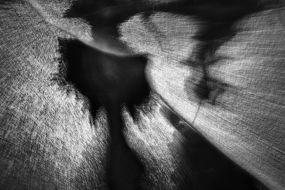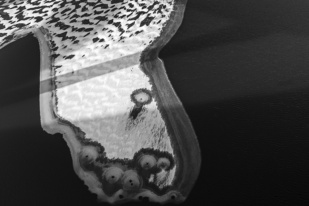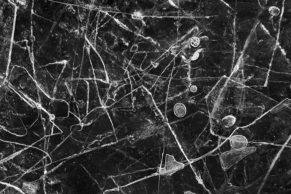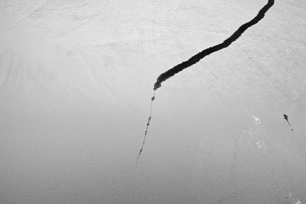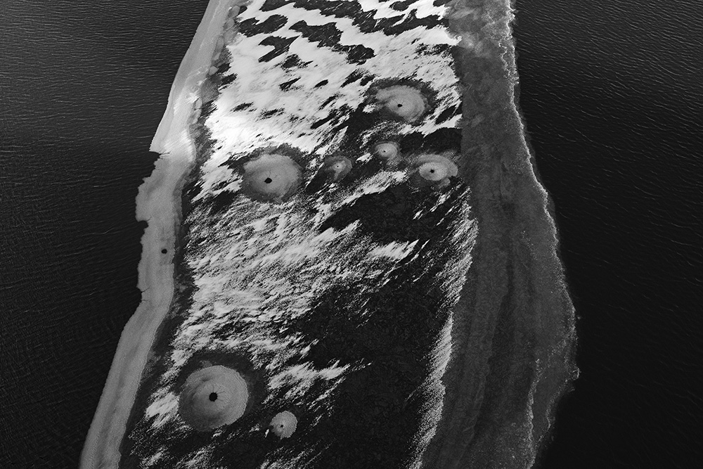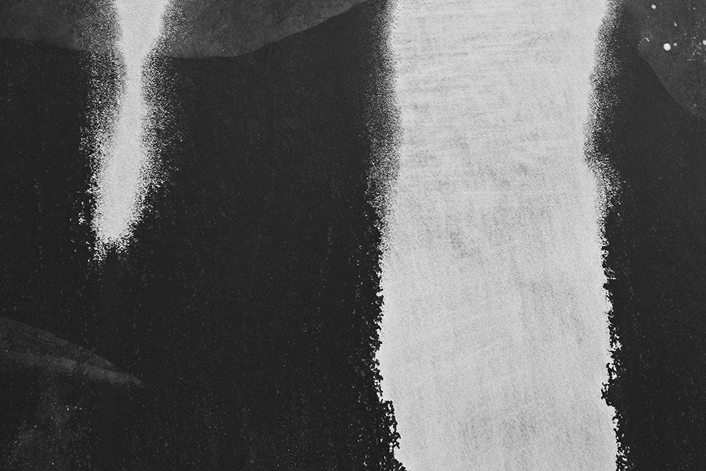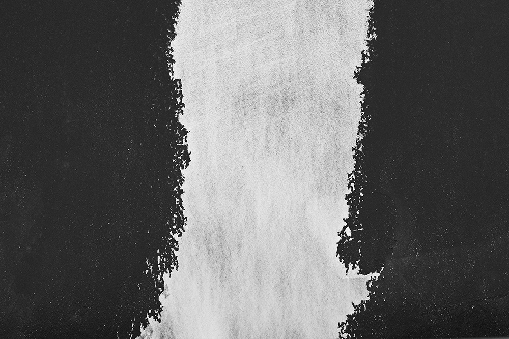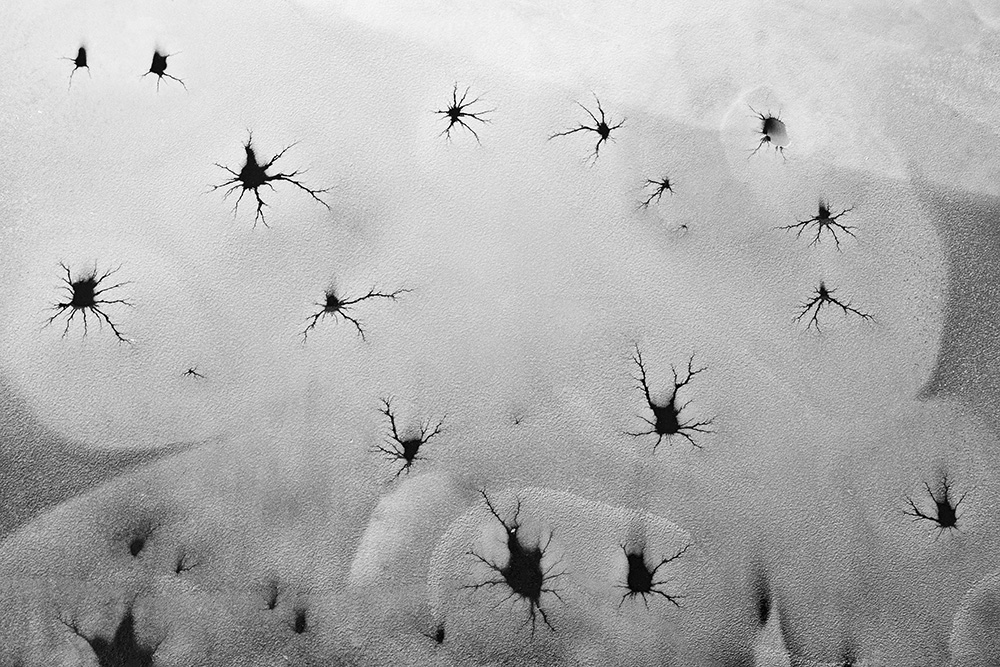 The white and black geometric patterns in these photographs are fragments of the frozen Han River. Shot from above in a bird’s-eye view, the images capture a vast abstract painting created by the river itself. Areas covered with snow appear pure white, while places where the snow has melted or rough ice remains appear deep black. If the river in its usual state reveals graceful lines through its flow, the frozen river of deep winter exposes solid and static planes and patterns.