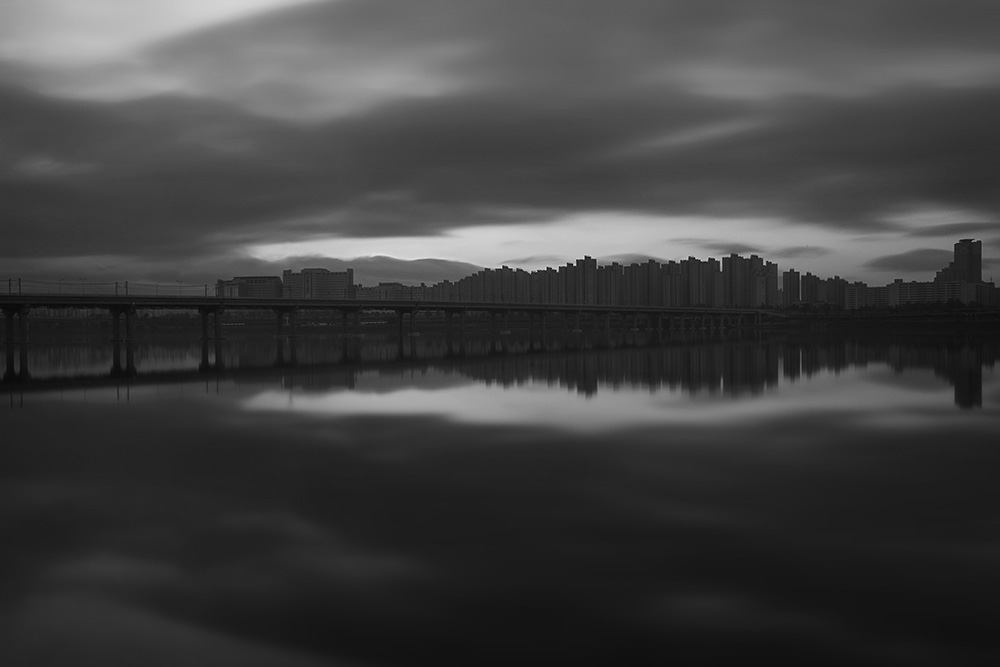 At certain moments, the Hangang sheds the noise and distractions of everyday life and reveals its inherent beauty. Everything around the river seems to pause, creating a still and contemplative scene. What appears to be an ordinary urban landscape gradually transforms into a space for reflection and meditation. The contrast between the rough texture of concrete structures and the gentle movement of water captures the dual character of the Hangang, where the city and nature coexist.