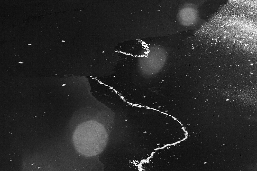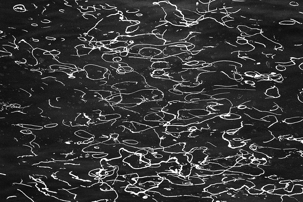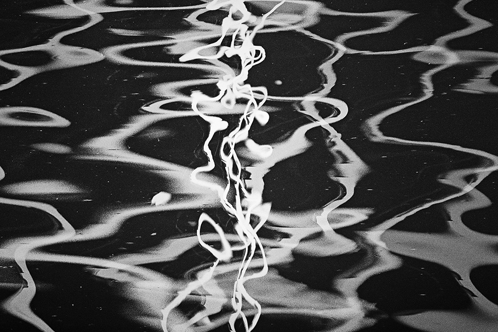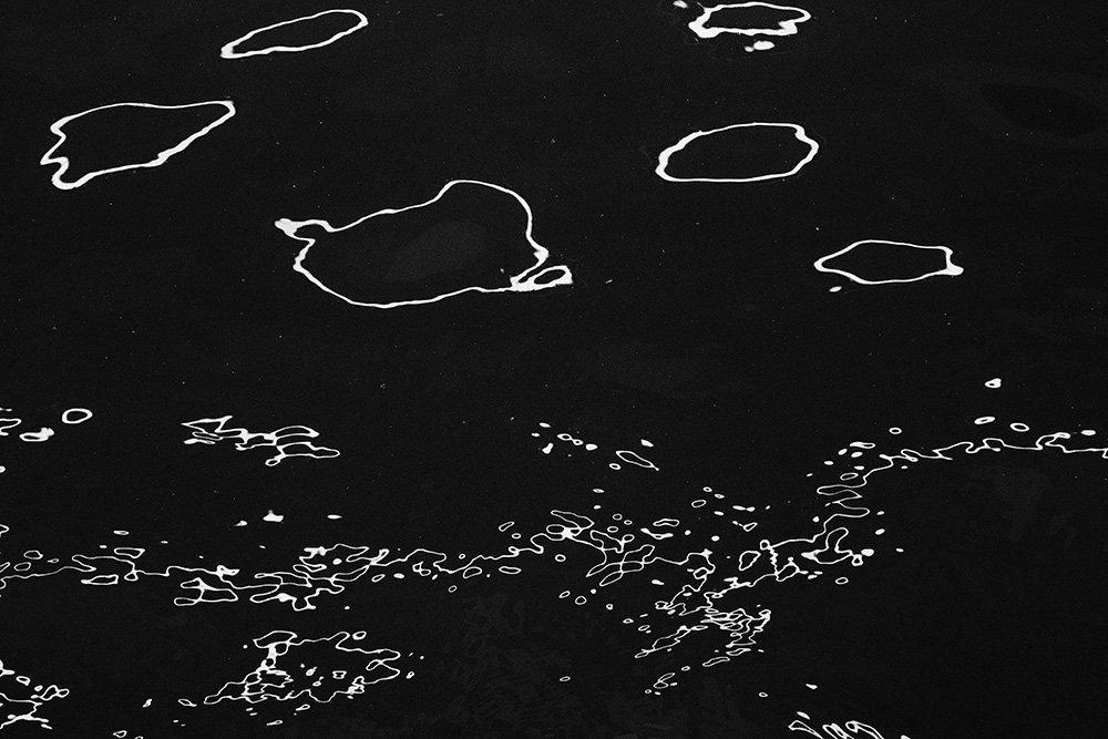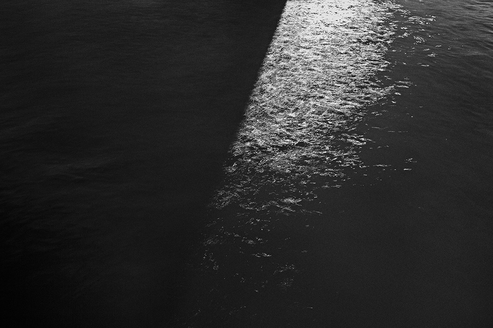 The river always remains in the same place, yet its surface is in constant flux. Ripples left by the passing wind, reflections and shadows cast by sunlight and artificial lights—at times, geometric patterns appear and vanish, and light breaks into tiny, star-like glimmers. I watched these moments closely and recorded the waves that caught my eye.