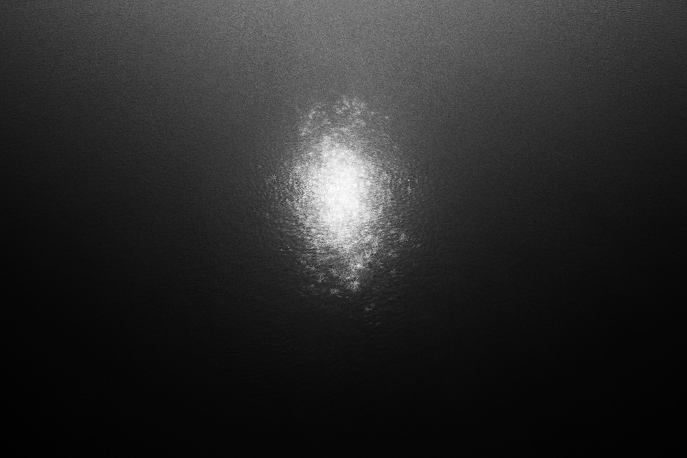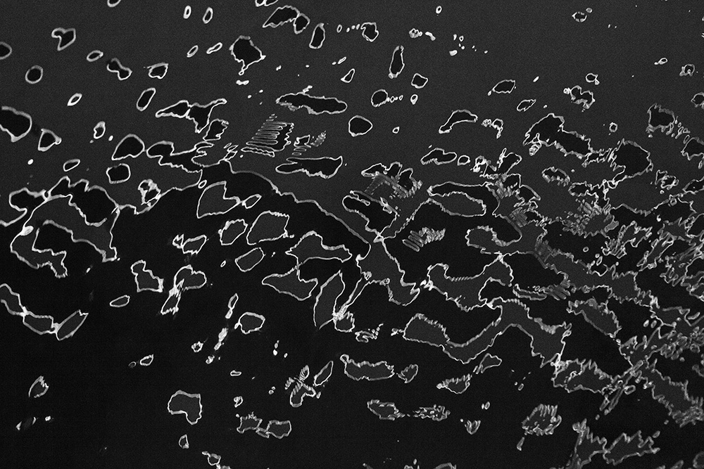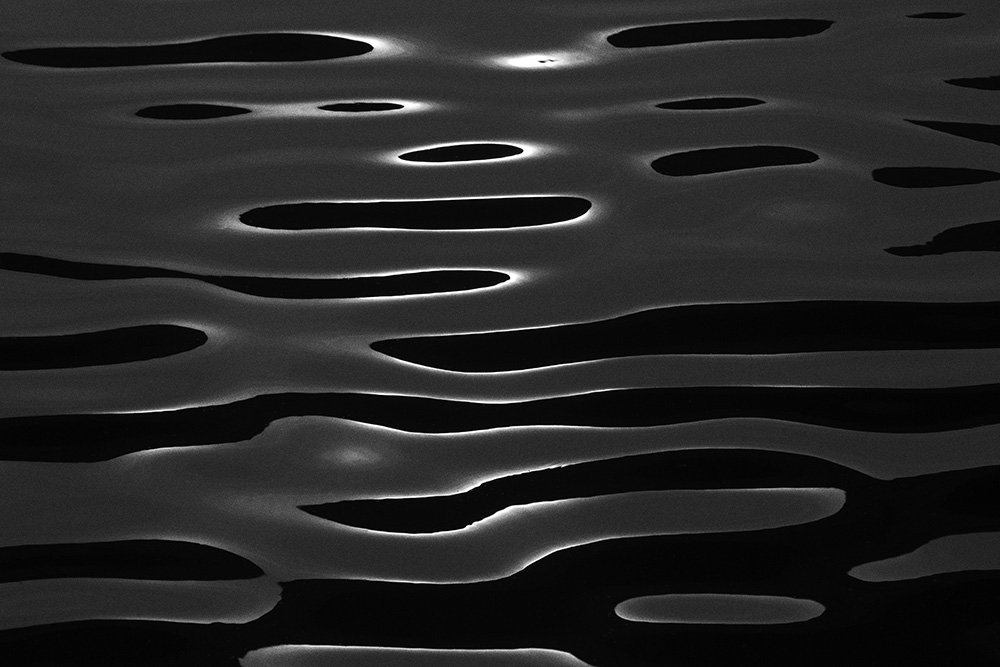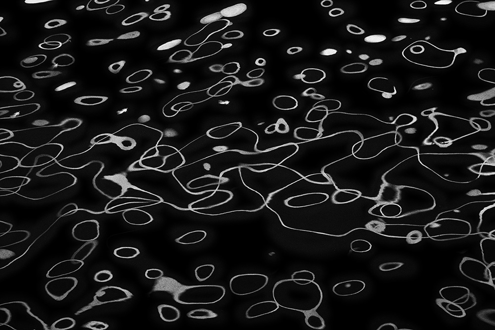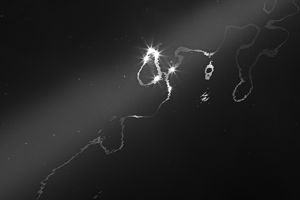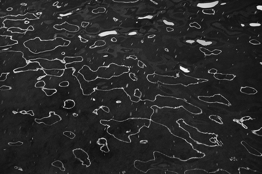 The river always remains in the same place, yet its surface is in constant flux. Ripples left by the passing wind, reflections and shadows cast by sunlight and artificial lights—at times, geometric patterns appear and vanish, and light breaks into tiny, star-like glimmers. I watched these moments closely and recorded the waves that caught my eye.