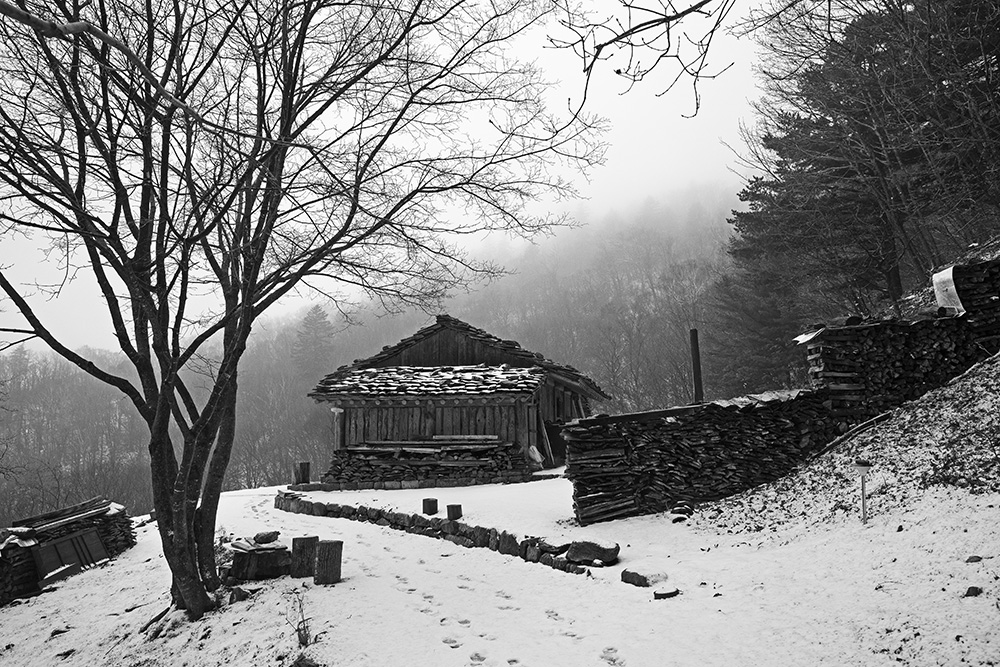 As I had almost finished my descent, I met the monk again as he was making his way back to the hermitage. Finding it remarkable that someone would stay so long to photograph Utongsu in such a secluded place, he kindly invited me back for tea. Sitting together under the shingle roof of the traditional hut, I drank tea while listening to old tales of Utongsu and stories of life in the mountains. Tasting tea brewed with water once heralded as one of the three most celebrated springs of the Joseon Dynasty was an entirely unexpected gift. Surrounded by birds that kept flying into the room, we lost track of time talking in a silence where time itself seemed to have paused. Before I knew it, the sun was setting.