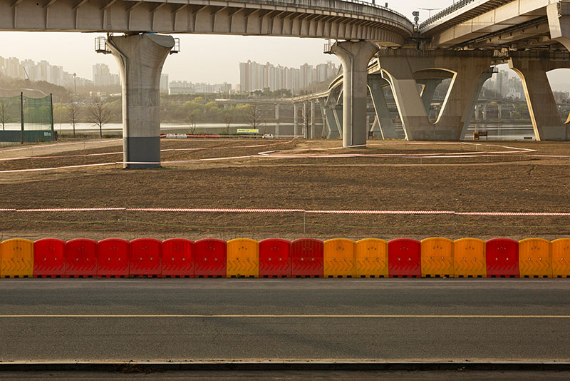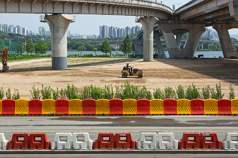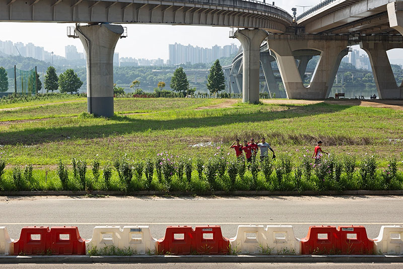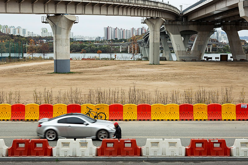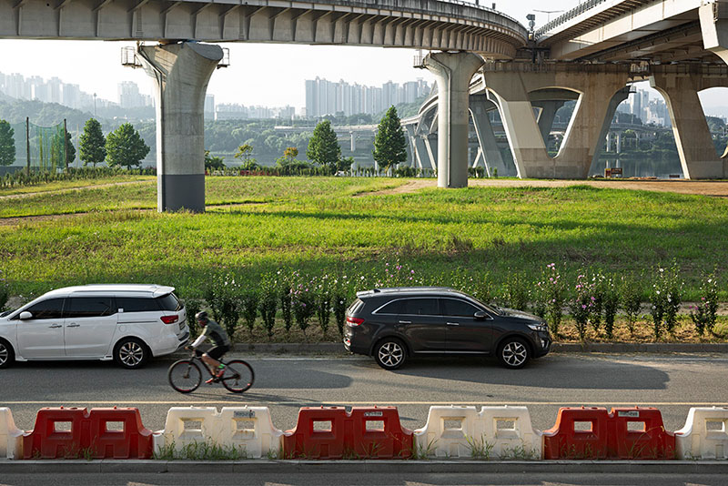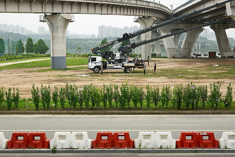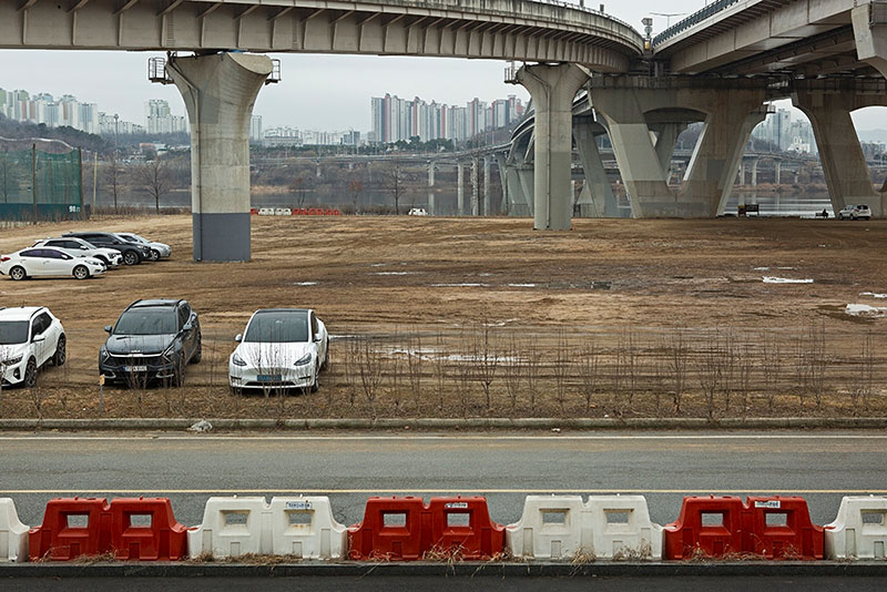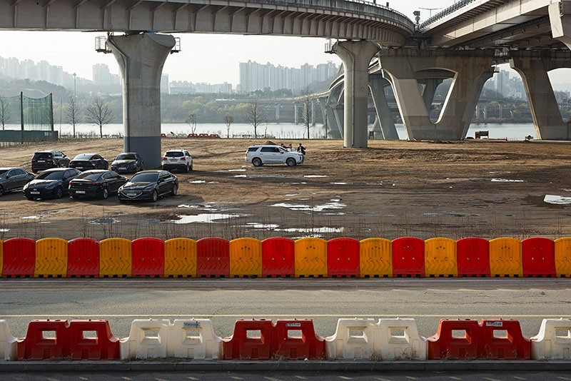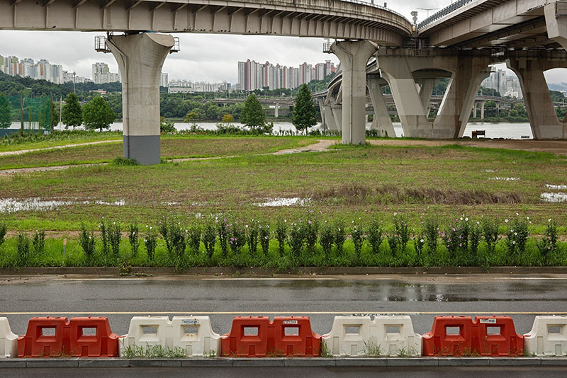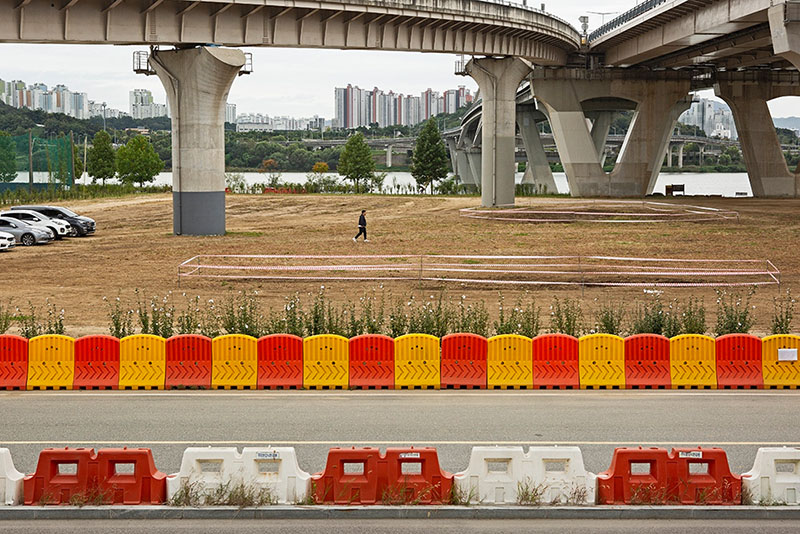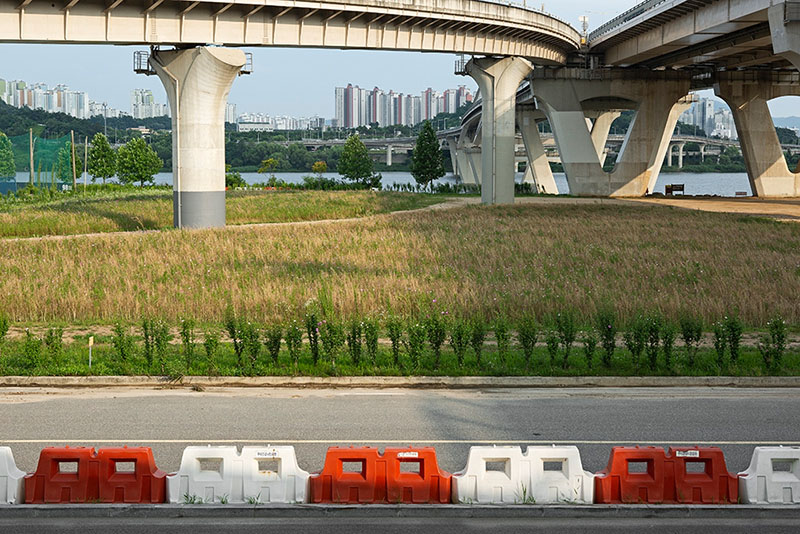 다리 아래 특별한 쓰임새 없이 남겨진 이 넓은 공간은 말 그대로 텅 빈 공터다. 강변에서 큰 행사가 열릴 때면 임시 주차장으로 변하기도 하고, 때로는 거친 오프로드 오토바이나 고가사다리차의 연습 공간이 되기도 한다. 간혹 영화나 드라마 촬영이 이루어지기도 한다. 공터를 둘러싸고 강을 따라 길이 놓여 있다. 가장 아래쪽의 자동차 전용 도로부터, 멀리 교각 아래 나무들이 작게 보이는 곳도 길이다. 길과 길 사이에 넓은 공터가 있는 평범한 곳을 지나쳐 다녔다.