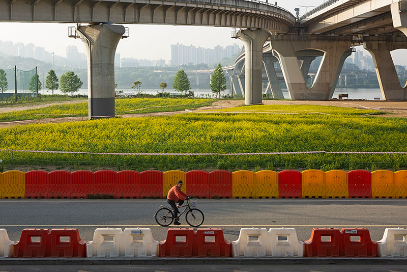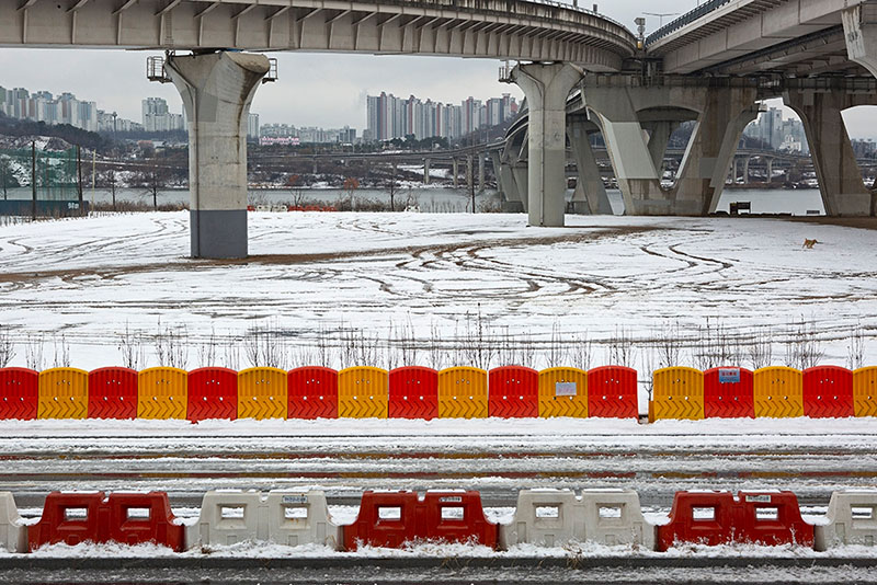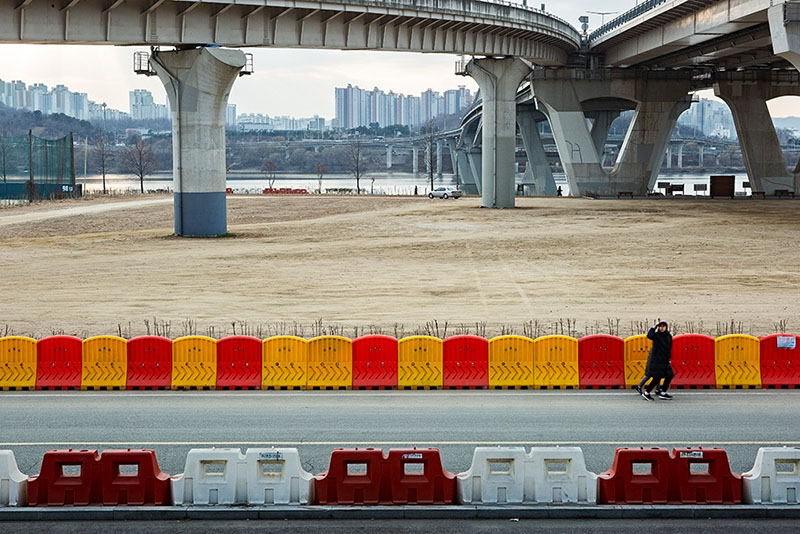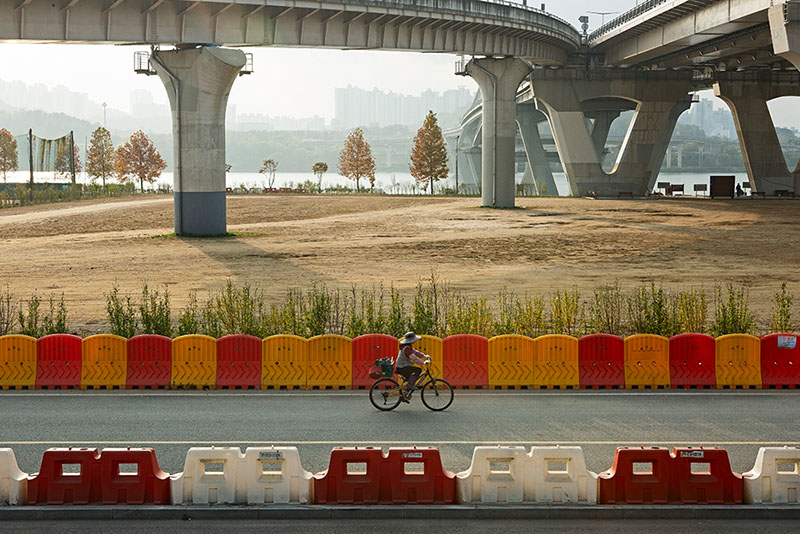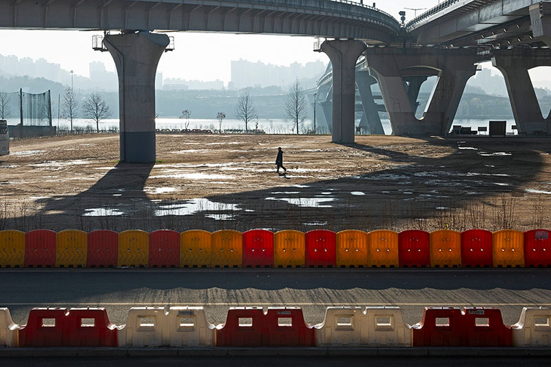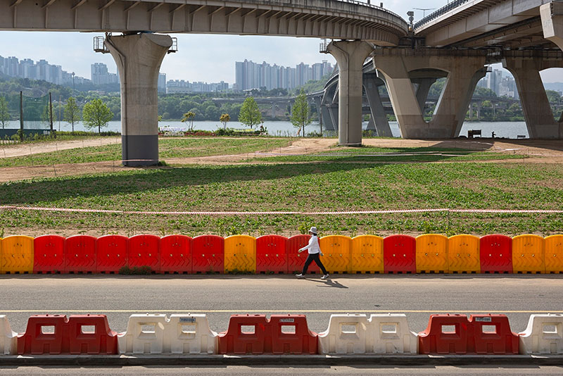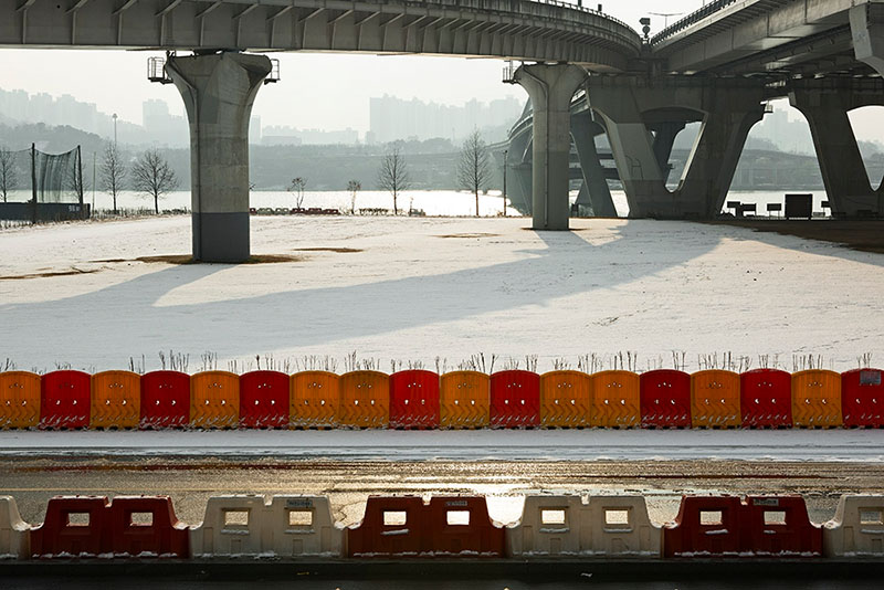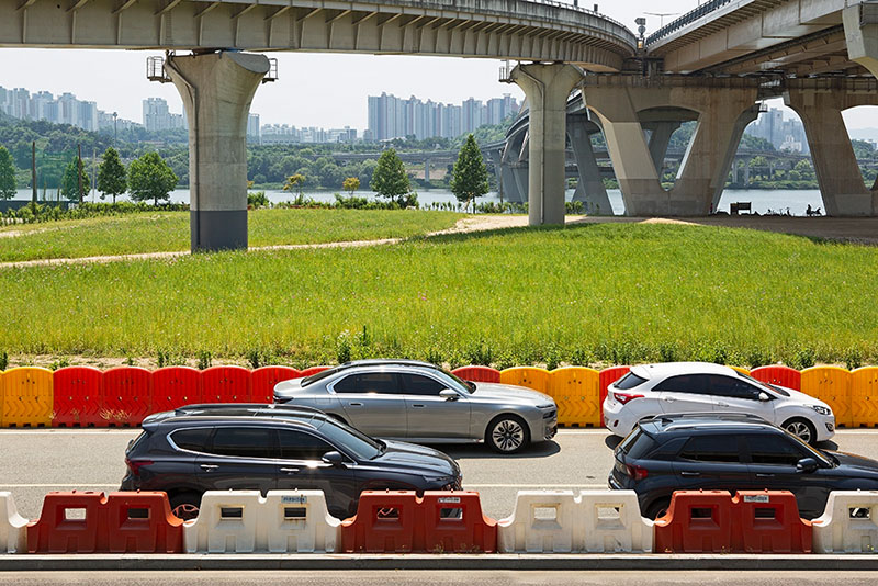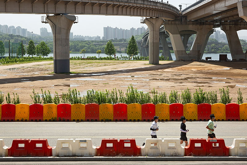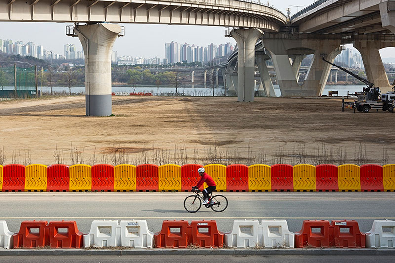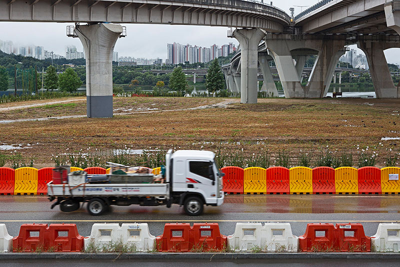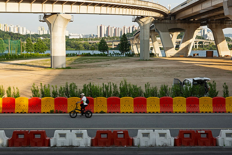다리 아래 특별한 쓰임새 없이 남겨진 이 넓은 공간은 말 그대로 텅 빈 공터다. 강변에서 큰 행사가 열릴 때면 임시 주차장으로 변하기도 하고, 때로는 거친 오프로드 오토바이나 고가사다리차의 연습 공간이 되기도 한다. 간혹 영화나 드라마 촬영이 이루어지기도 한다. 공터를 둘러싸고 강을 따라 길이 놓여 있다. 가장 아래쪽의 자동차 전용 도로부터, 멀리 교각 아래 나무들이 작게 보이는 곳도 길이다. 길과 길 사이에 넓은 공터가 있는 평범한 곳을 지나쳐 다녔다.