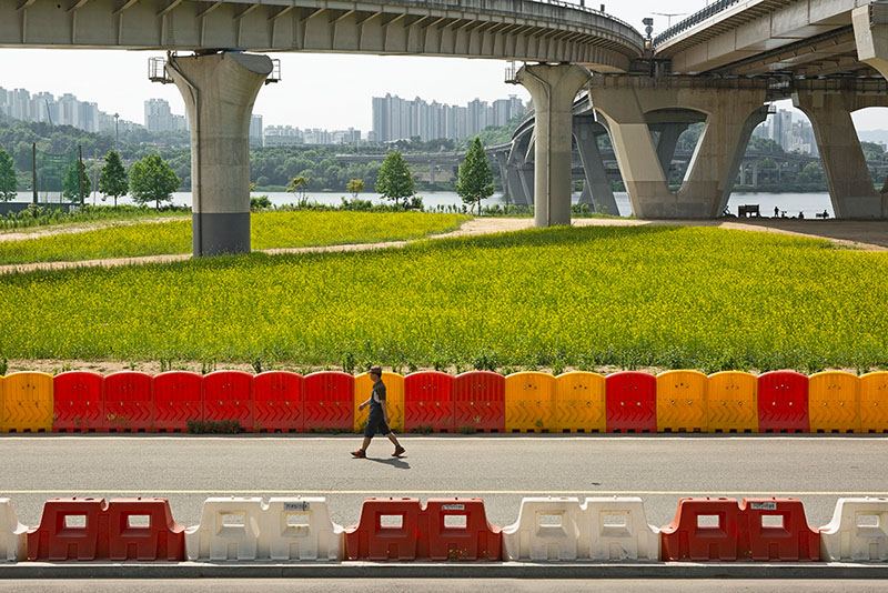 황량하기만 하던 이 무채색의 공간이 내게 특별한 의미로 다가온 것은 유채꽃을 심었다는 작은 안내판을 발견하면서부터였다. 버려진 듯했던 이곳이 꽃밭이 되면 어떻게 변할지 궁금했다. 두 달이 지나자 척박한 땅 위로 기적처럼 샛노란 물결이 일렁이기 시작했다. 무겁게 짓누르던 교각 아래의 삭막한 풍경은 온데간데없이 사라졌다.