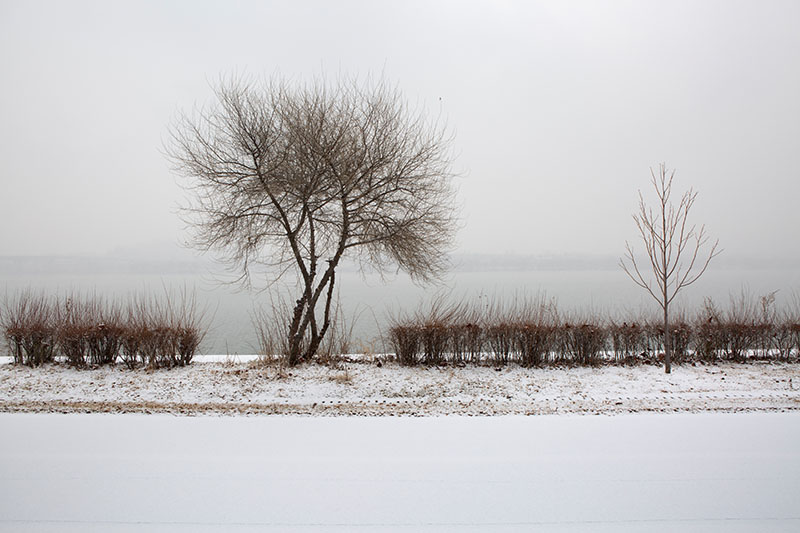 시간이 흐르며 튤립나무는 늠름하게 자라났지만, 보리수나무는 점차 쇠약해졌다. 결국 2022년 가을, 보리수나무는 가지가 모두 꺾여 쓰러졌고 이듬해 겨울에는 밑동만 남긴 채 완전히 잘려 나갔다. 든든한 존재가 사라진 프레임 속, 비어버린 왼쪽 공간은 유난히 쓸쓸해 보였다. 비가 내리는 날이면 홀로 남은 튤립나무가 소리 내어 우는 것 같은 느낌이 들기도 했다.