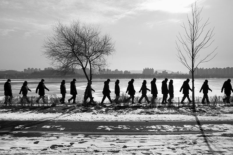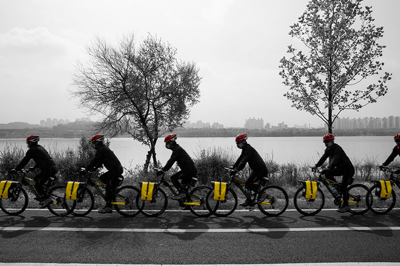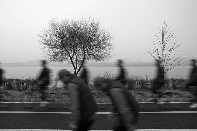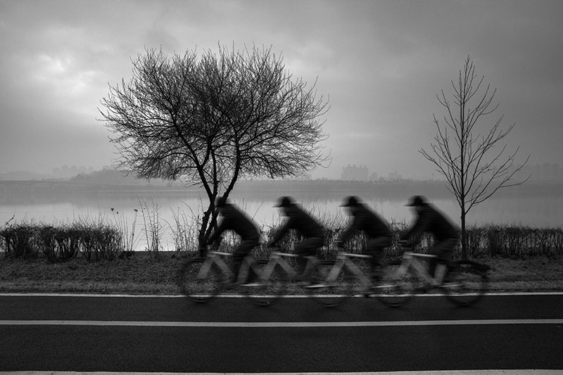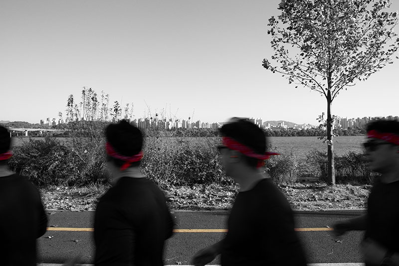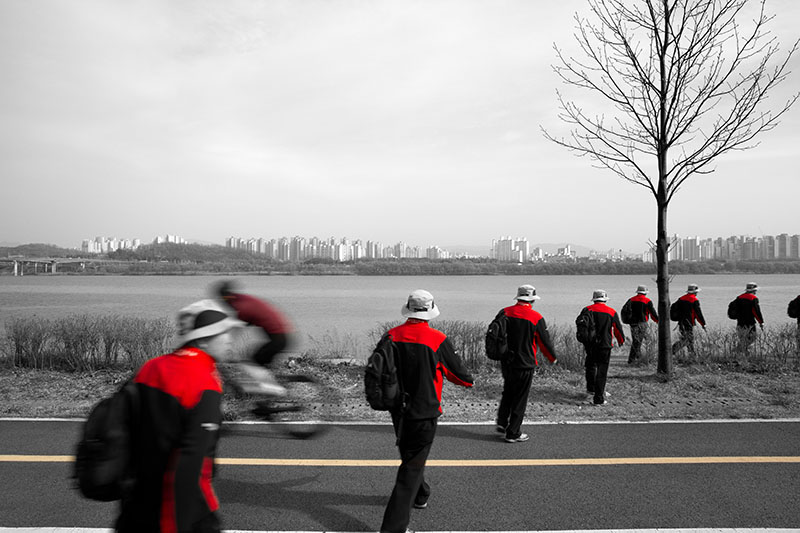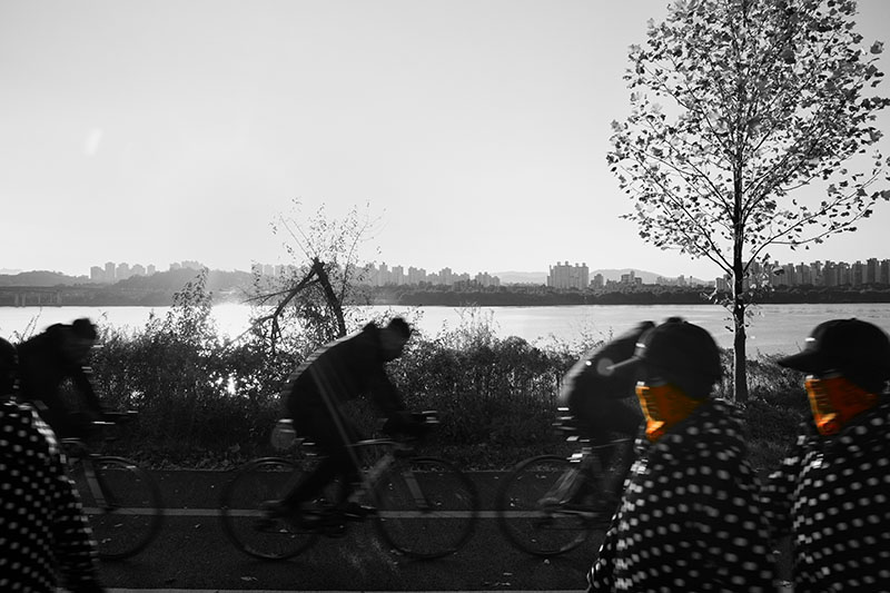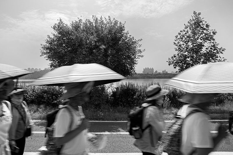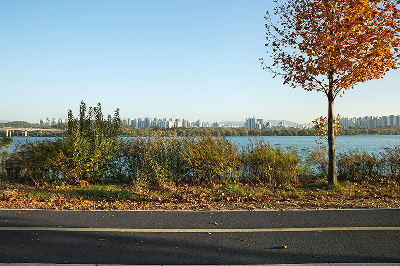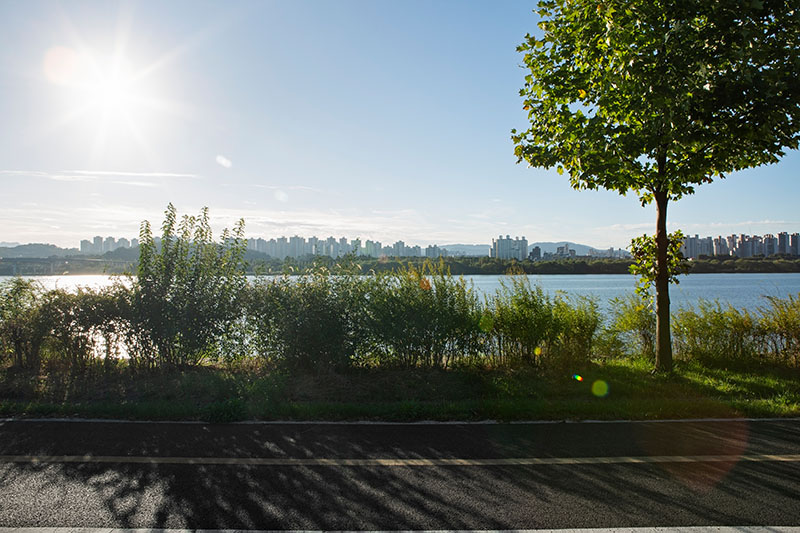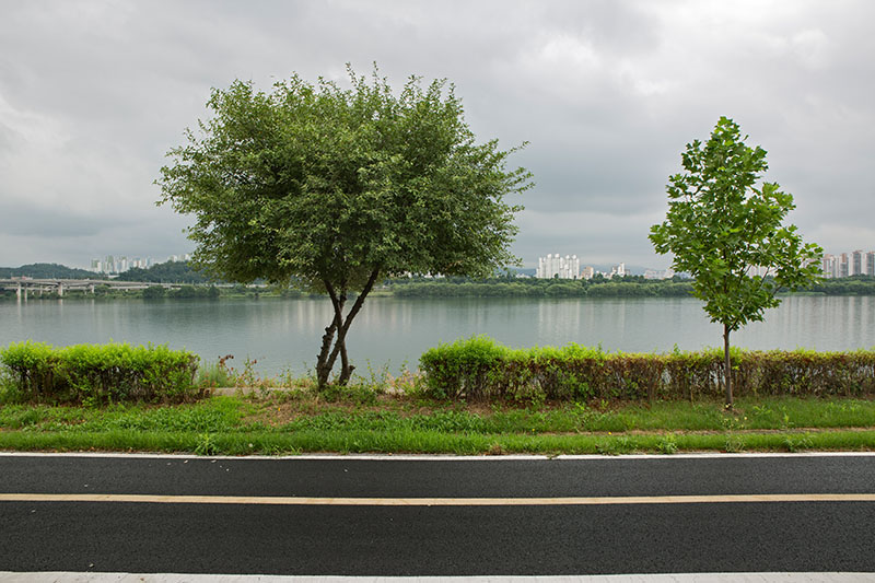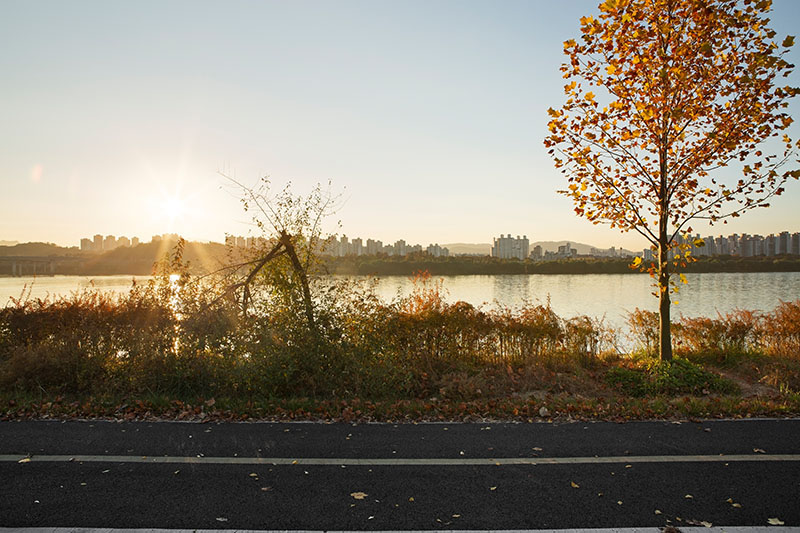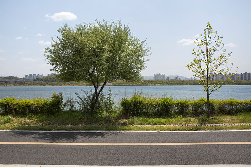 한강을 따라 이어진 자전거길 옆을 걷고 있었다. 일정한 간격으로 식재된 어린 튤립나무들이 걷는 속도에 맞춰 하나씩 시야에 들어왔다. 그 정돈된 풍경 틈에서 느닷없이 커다란 토종 보리수나무 한 그루를 마주했다. 엇박자처럼 불협화음을 낼 것 같던 보리수나무는 튤립나무와 묘한 조화를 이루고 있었다. 세월을 품은 어머니 같은 보리수나무와 이제 막 성장해 가는 아들 같은 튤립나무. 종도 수령도 다르지만 한 공간에 나란히 서 있는 풍경을 보며, 이 두 나무가 겪어낼 시간을 관찰하고 기록하기로 마음먹었다.