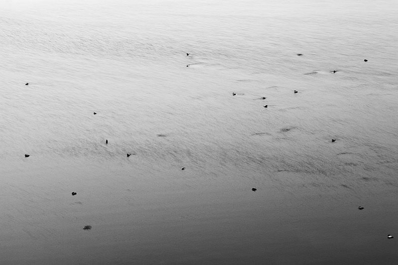 하지만 내 사진 속에서 새들은 그저 작은 점(點)으로 등장할 때가 많다. 정사각형이나 파노라마 등 다양한 판형 속에서 이 생명체들을 작게 표현하는 이유는 명확하다. 내 작업의 진정한 주인공은 사람도, 새도, 숲도 아닌 ‘강물 그 자체’이기 때문이다. 엑스트라가 주인공보다 지나치게 돋보이면 작품의 본질이 흐려진다. 강 위에서 새가 주인이 될 수 없듯, 인간 역시 마찬가지다. 우리는 모두 거대한 자연의 흐름 위에 잠시 머물다 가는 엑스트라일 뿐이다.