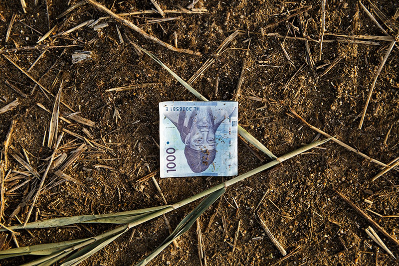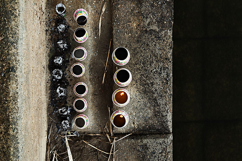 강변을 걷다 보면 자연 앞에 무언가를 간절히 기원하는 인간의 흔적을 마주하게 된다. 강가에 띄워진 수상 법당에는 가족의 건강과 평안을 비는 사람들의 발길이 이어지고 한편에서는 무속 신앙의 치성이 치러지기도 한다. 타다 남은 초와 명주실에 감긴 명태나 과일 같은 제물들 그리고 오방색 천들은 인간의 힘으로 어찌할 수 없는 소망을 자연에 의탁하려는 마음의 표현이다. 사람들은 강물 앞에서 일상의 소망을 빌고 다시 살아갈 힘을 얻는다.